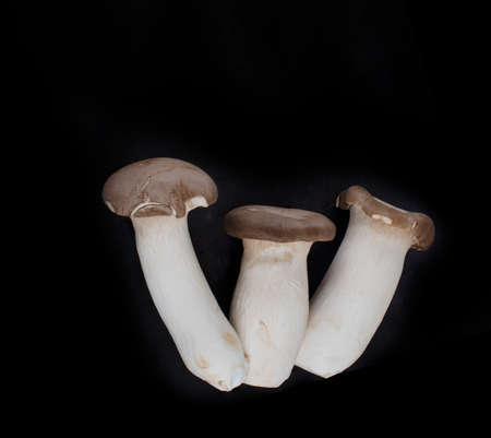 Pleurotus eryngii mushrooms isolated on black background