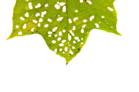 Green leaf with holes isolated on white background