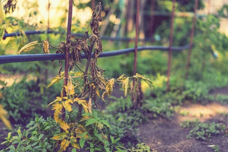 dried out tomato, tomato gone bad. Tomatoes grown in the greenhouse dried due to illness or disrepedness. Agriculture Concept. toned.