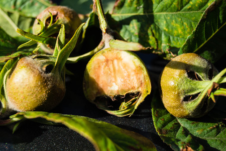 Ripe medlar fruits on tree branches.