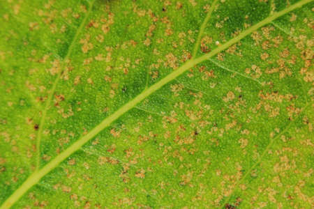 Decaying spots on yellow and green dead leaf in Autumn