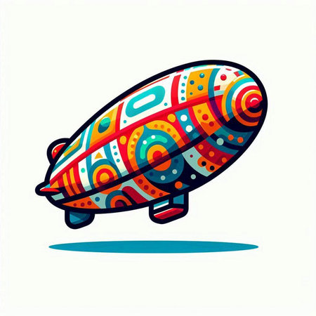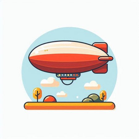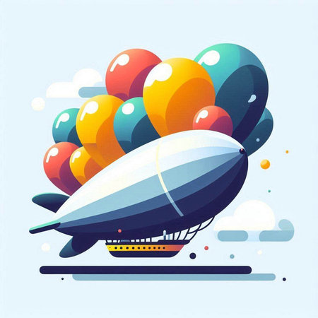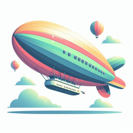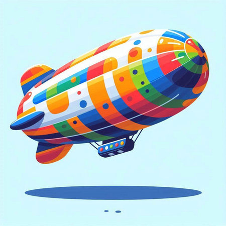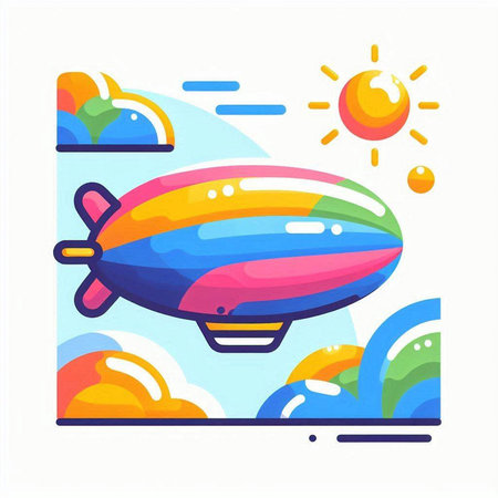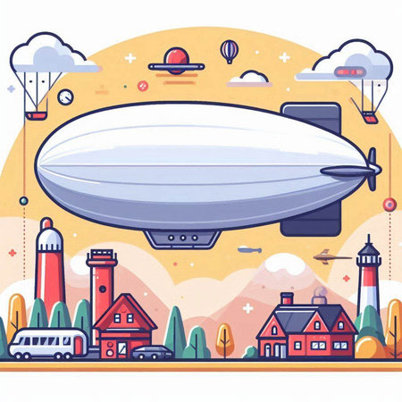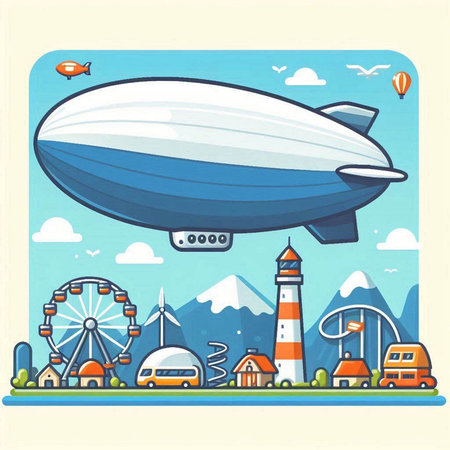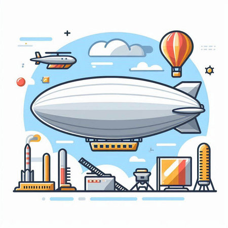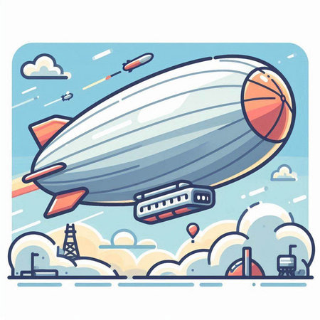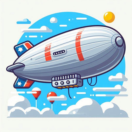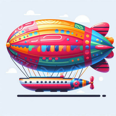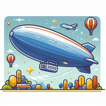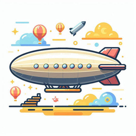 Airship in the sky. Colorful vector illustration in cartoon style.