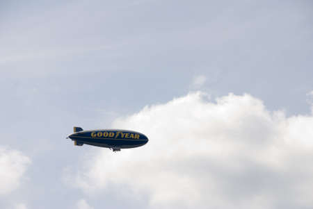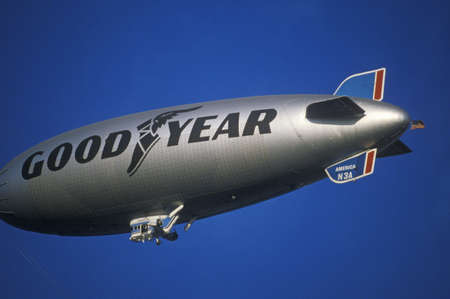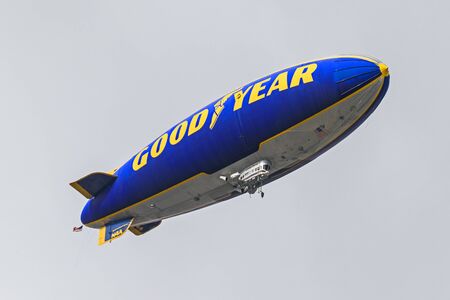 FORT LAUDERDALE - OCTOBER 11: Good Year blimp flies up and down the Florida coastline near Fort Lauderdale on October 11, 2014