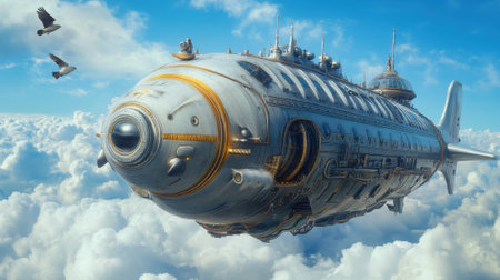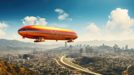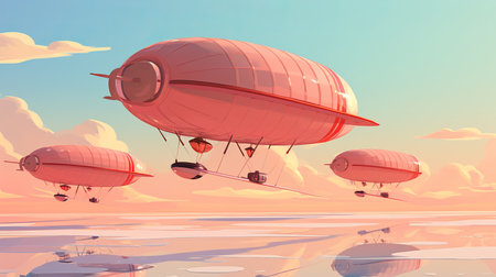 Conceptual design of future airships, zeppelins soaring through the air. Ai generated.