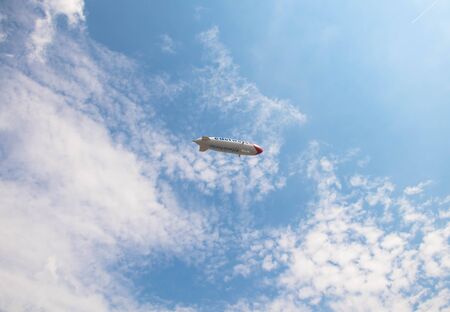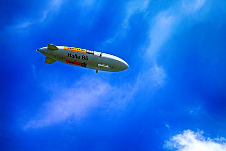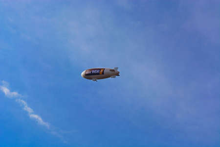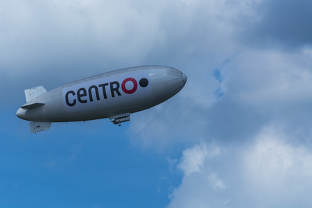 FRIEDRICHSHAFEN, GERMANY, JULY 24, 2016: a commercial airship is carrying passengers over bodensee near friedrichshafen, germany.