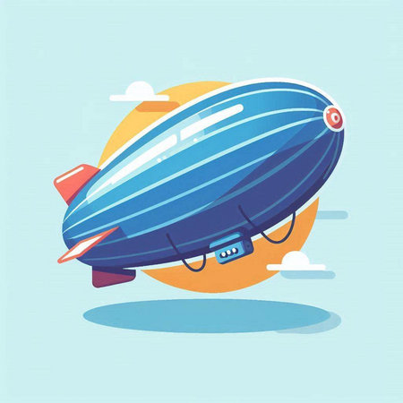 Airship. Air transport. Vector illustration in flat cartoon style.