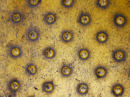 metal rivets on the surface, close-up