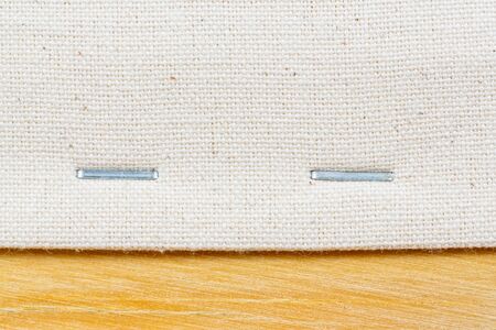 Close up staple cloth end on wooden frame