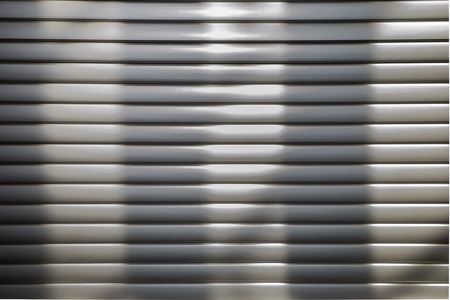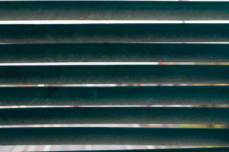 Metal blinds along the road. Background from slats. Steel window with slots.