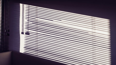 Light streaming through blinds creates patterns on a wall in a quiet room during day