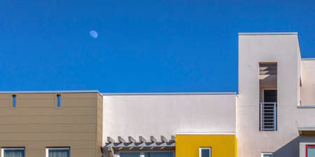 Colorful row of modern houses under clear blue sky