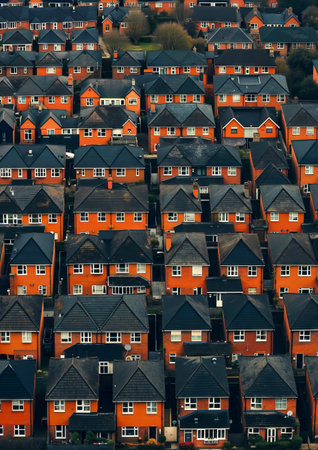 Cookie-cutter housing development, Ai generated image