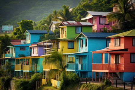 Colorful wooden houses on the island of Sri Lanka, Asia, Colorful houses on the tropical island of Barbados, AI Generated