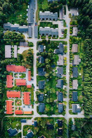 Aerial view of residential houses neighborhood in Finland
