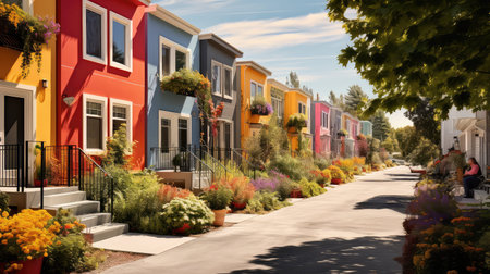 Vibrant Neighborhood with Colorful Houses in a Row Showcasing Unique Architectural Styles and Charm
