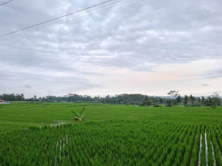 The beautiful view of the rice fields on the outskirts of Yogyakarta, Indonesia, has become an attraction for rural tourism destinations.