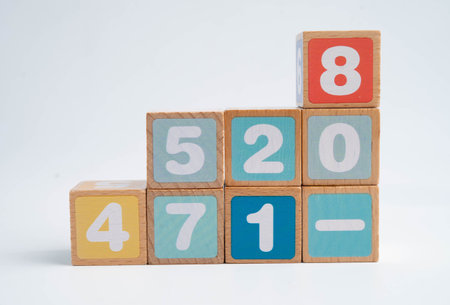 wooden block with numbers on blue background