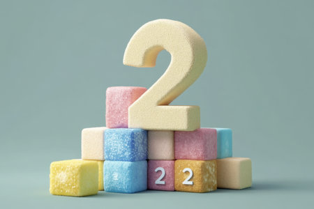 A stack of colorful blocks with the number 2 on top. The blocks are arranged in a way that they form the number 2
