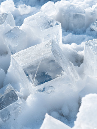 Abstract Cold Geometry Featuring Frosted Cubes of Ice Crystals and Intricate Winter Patterns