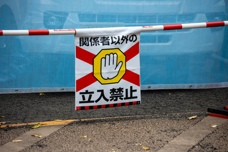 Tokyo, Japan, October 31, 2023: Construction site warning sign on Tokyo street
