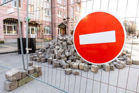 Heap of cobblestones piled up in a pile. Road surface in the historic center of Rome in Italy under renovation.