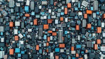 Colorful collection of metal scraps and rusty materials forms a textured landscape, highlighting the challenges and potential of recycling in urban settings.