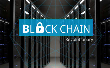 Blockchain technology Concept on server background. Data encryption.