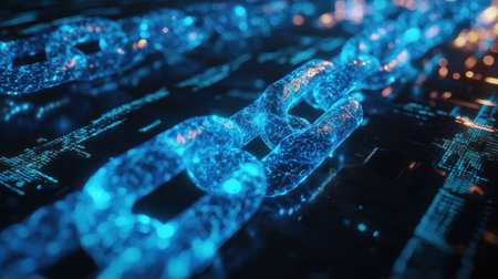 Glowing blockchain chain with futuristic lighting