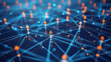 Connected network nodes abstract visualization, technology concept backdrop