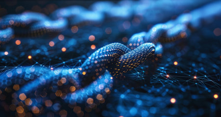 Creative glowing blockchain background. Cryptocurrency and e-commerce concept. 3D Rendering