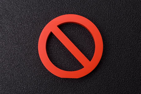 Red prohibition symbol NO. Expression of protest and disagreement. Inaccessibility and absence. Policy change warning, bans. sanctions, embargo, economic restrictions. Warning and rejection
