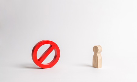 Human figure is looking at No sign or No symbol. prohibition and restriction. Censorship, control over the Internet and information. Restrictive laws. Crazy laws printer. something is not permitted