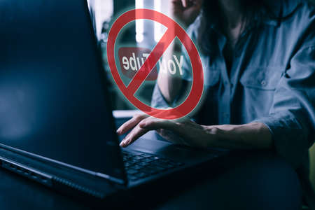 Moscow, Russia - March, 02, 2022 - Prohobition of Youtube, popular live video streaming in internet. Government blocked live streaming service. concept of propaganda.