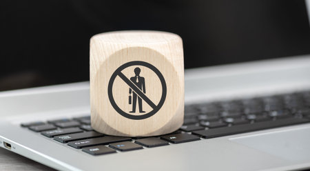 Wooden block with symbol of unemployment concept on laptop keyboard