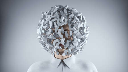 Pieces of paper with negative emotions in the head. Stress and psychotherapy concept.