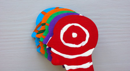 Segmentation inside human head shape symbolizing bias and social stereotypes.
