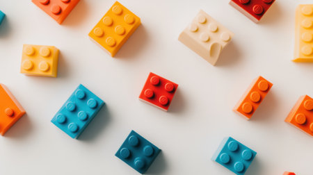A vibrant assortment of colorful plastic blocks scattered on a light background, perfect for promoting creativity and educational play in children's activities.