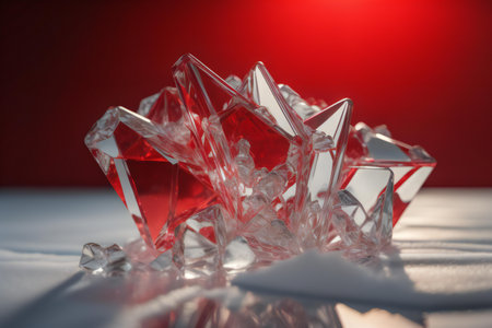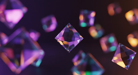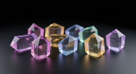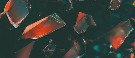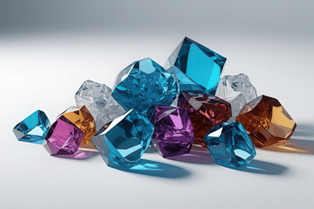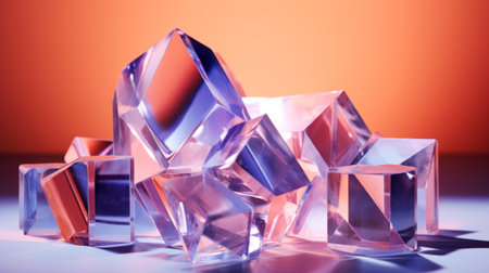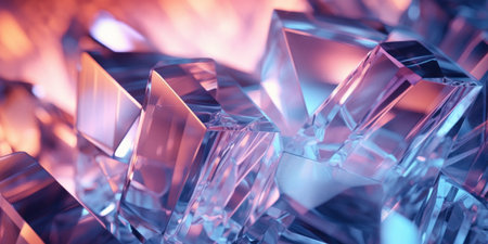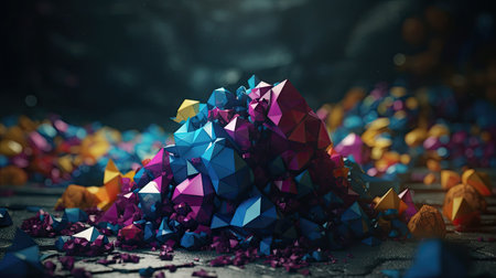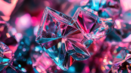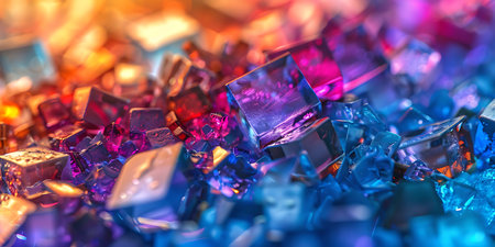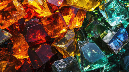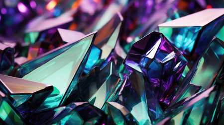 Translucent shapes create a colorful abstract composition with vibrant reflections. The interplay of light enhances the beauty of this intricate design.