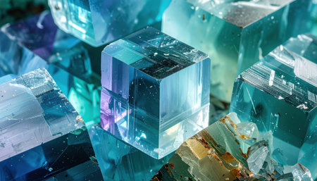 Fluorite cube edges in translucent hues with top copy field representing crystal geometry suitable for geology jewelry and design