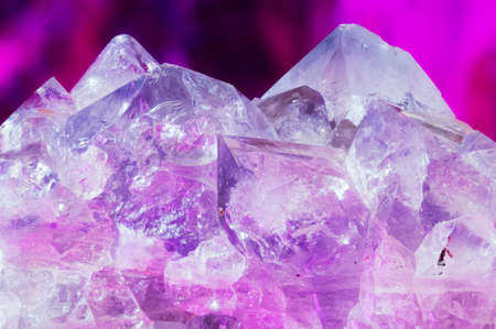 Crystal Stone macro mineral surface, purple rough amethyst quartz crystals