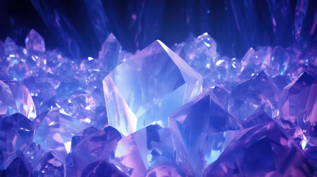A captivating array of crystal fragments scattered across a vibrant purple background, creating a visually stunning and artistic composition perfect for design projects.
