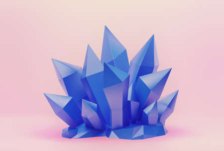 Abstract geometric crystals. Blue gemstone on pink background. 3D rendering