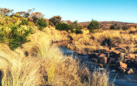 A small river winds through the savannah in South Africa