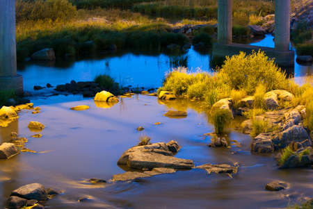 Still water of Aura river at night under the bridge
