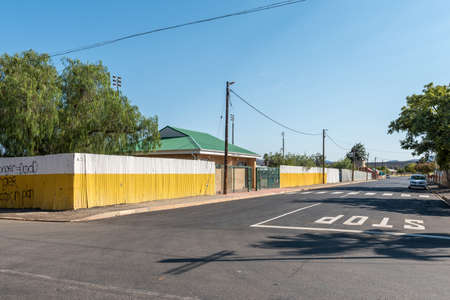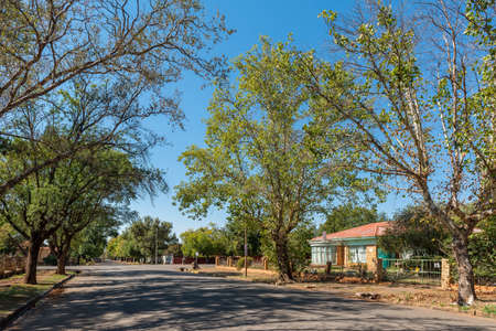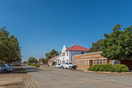 ROUXVILLE, SOUTH AFRICA - APRIL 23, 2021: A street scene, with buildings and vehicles, in Rouxville in the Free State province
