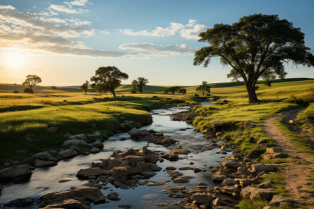 Vast campina with high grass under the sun., generative AI