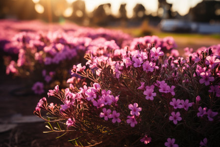 Blooming wildflowers stretch towards the vibrant sunset in a serene meadow filled with colors