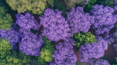 Beautiful jacaranda trees in bloom along the road in the park