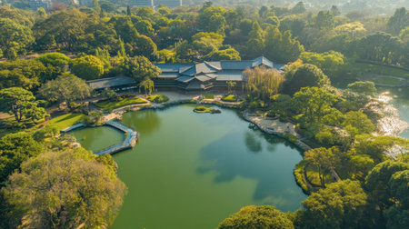 Experience the beauty of a serene Japanese garden nestled in an urban landscape. This tranquil space features lush greenery, a peaceful pond, and scenic pathways.