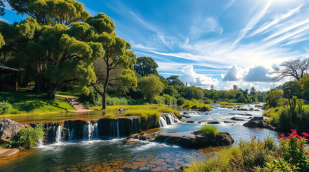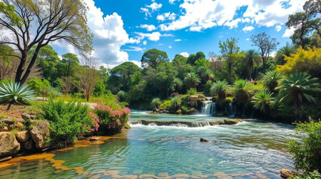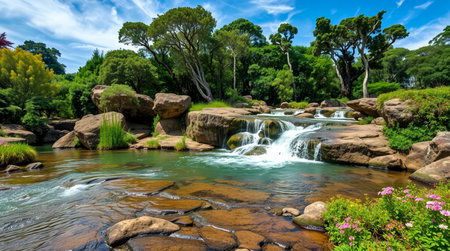 Waterfall in botanic garden, Sydney, Australia. Beautiful landscape with a waterfall.